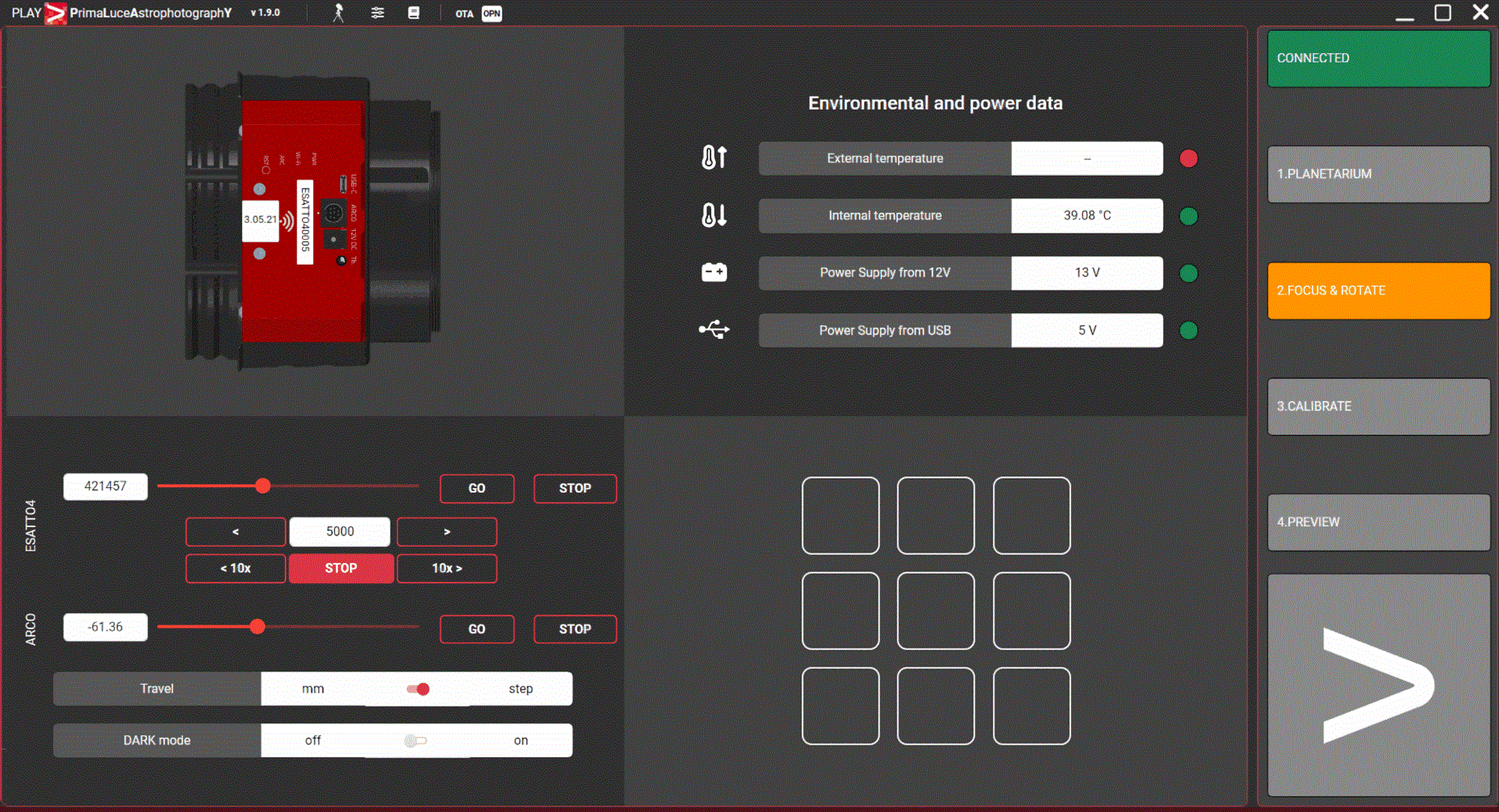 ARCO 2" to precyzyjne narzędzie do zdalnego kadrowania, idealne dla mobilnych i stacjonarnych zestawów astrofotograficznych. W połączeniu z wyciągami ESATTO lub SESTO SENSO tworzy kompaktowy, w pełni zautomatyzowany układ ogniskowania i rotacji.