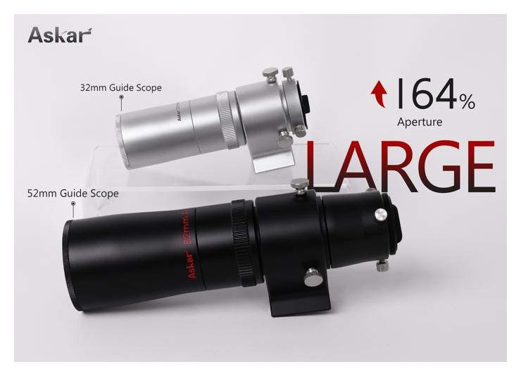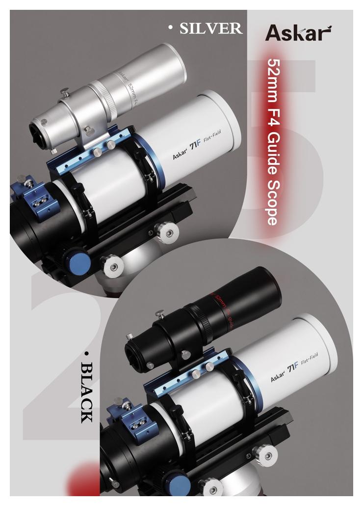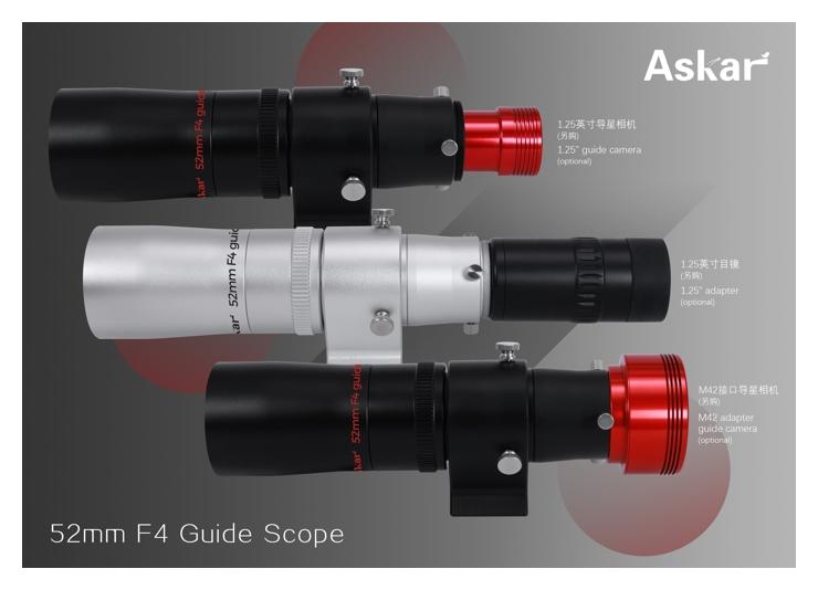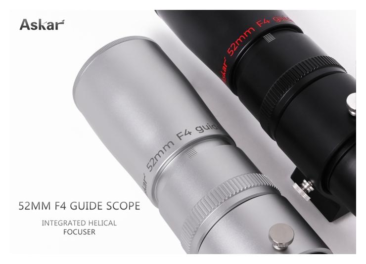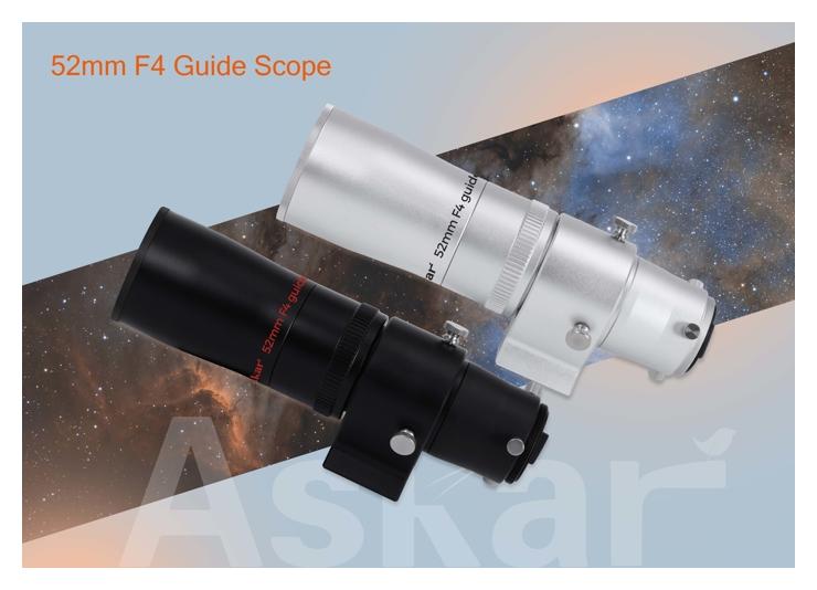Askar 52 mm guide scope black to najnowszy guider w ofercie firmy Askar, którego apertura pozwala zbierać niemal 164% więcej światła niż w modelu Askar Guide Scope 32 mm f/4, co jednocześnie przekłada się na zasięg gwiazdowy wynoszący mag 10,4. Oprócz zastosowania w astrofotografii guider ten po doposażeniu w opcjonalny adapter można wykorzystać w obserwacjach wizualnych.