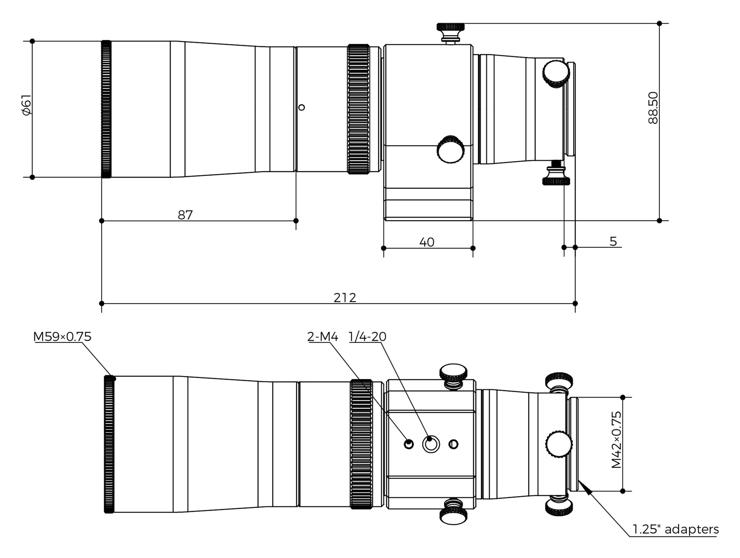 • uniwersalne mocowanie akcesoriów za pomocą gwintu M42x0.75 lub adaptera 1,25"