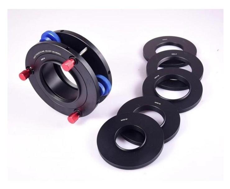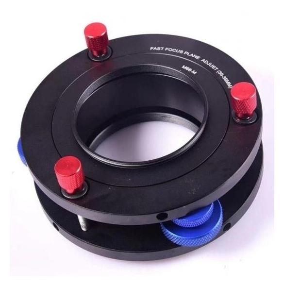Easily adjusting the focal plane and backfocus of your camera is now a breeze with the Fast Focus Plane KIT! This kit includes a tilter with 7 different adapters to meet all your needs: Female adapters M48x0.75, M54x0.75 and M68x1 Male adapters T2x0.75, M48x0.75, M54x0.75 and M68x1 Adjustment range (minimum and maximum thickness): 36-39mm Adaptable to CMOS cameras with 17.5mm backfocus