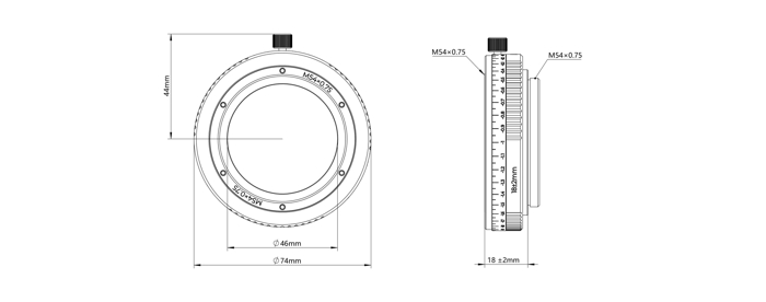 Askar M54/M54 Backfocus Adjuster to precyzyjny adapter umożliwiający dostosowanie odległości roboczej kamer i innych akcesoriów optycznych wyposażonych w gwinty M54.