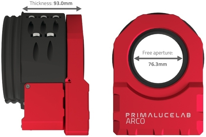 • Rotator ARCO 3" — 360° obrotu, rozdzielczość 1 arcsec/step, grubość 23 mm, wolna apertura 76,3 mm