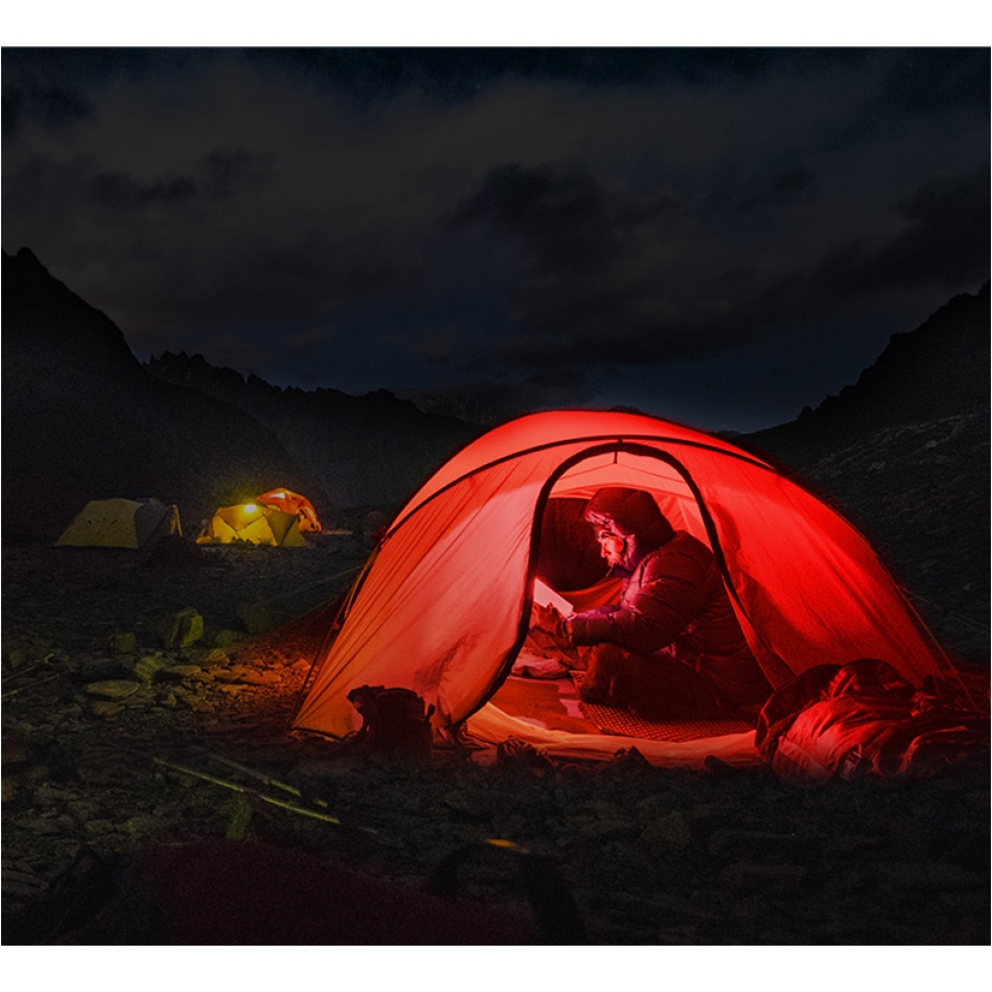Światło emitowane przez czerwoną diodę doskonale sprawdzi się do zadań wymagających zachowania widzenia w nocy, może również pełnić funkcję oświetlenia awaryjnego lub ratunkowego. Do aktywacji czerwonego światła służy oddzielny przycisk zlokalizowany na górze lampy.