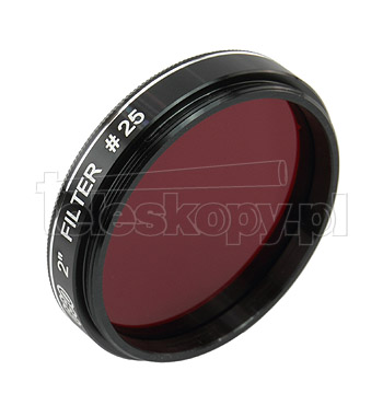 Filtr planetarny w metalowej oprawie 2 cale. Kolor #25, tj. czerwony. Można go zamocować do każdego okularu 2" z gwintem filtrowym. Posiada gwint z obydwu stron oprawy (filtry można ze sobą łączyć w kombinacje kolorów).