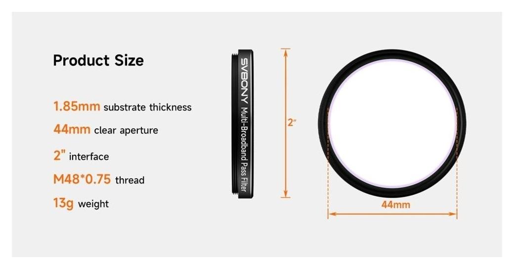 Uwaga! Filtr Svbony Multi-Broadband SV260 2" nie jest zalecany do prowadzenia obserwacji wizualnych ani obserwacji słońca.