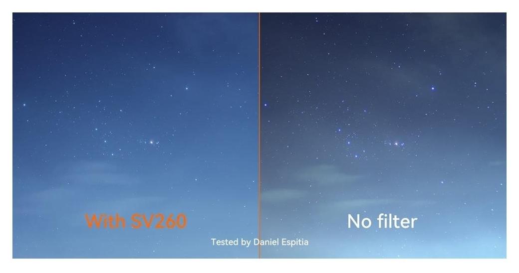 Svbony Multi-Broadband SV260 2" to profesjonalny filtr astronomiczny opracowany z myślą o umożliwieniu wykonywania zdjęć astrofotograficznych w bezpośredniej bliskości miasta. Dzięki zastosowaniu najnowszej technologii nanoszenia warstw optycznych, filtr ten bardzo wiernie odwzorowuje kolory fotografowanych obiektów.