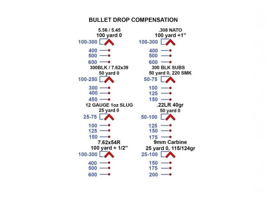 Autorska siatka ACSS Vulcan została wyskalowana pod popularne kalibry: 5,56 NATO, 7,62 NATO, 5,45×39 mm, 7,62×39 mm, .308 Win, 12 GA slug, 7,62×54R, .22LR oraz 9 mm. Zamiast tradycyjnej kropki zastosowano szewron, którego czubek umożliwia precyzyjne strzały na dystansach do 600 m, a podkowa CQB natychmiast przyciąga wzrok przy strzelaniu na krótkich dystansach. Dodatkowo uwzględniono podziałki BDC, automatyczne znakowanie odległości oraz poprawki na wiatr.