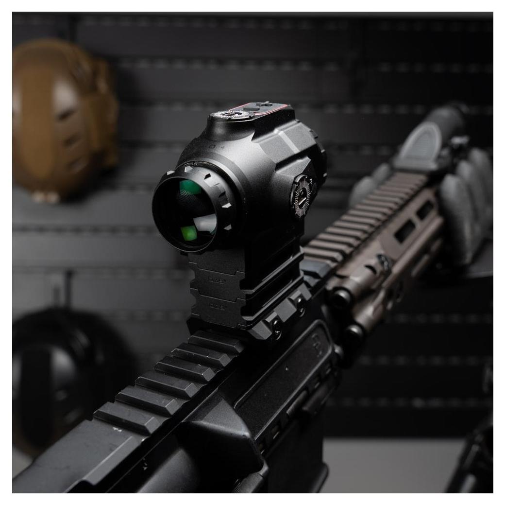 Siatka celownicza RTR-1 (Rapid Targeting Reticle) pozostaje widoczna nawet przy całkowicie rozładowanej baterii, co znacząco zwiększa niezawodność w warunkach służbowych, terenowych i awaryjnych. Kolimator oferuje podświetlenie w kolorze czerwonym z 12 poziomami jasności, w tym 3 trybami kompatybilnymi z noktowizją, a także funkcję automatycznej regulacji jasności w zależności od warunków oświetleniowych.