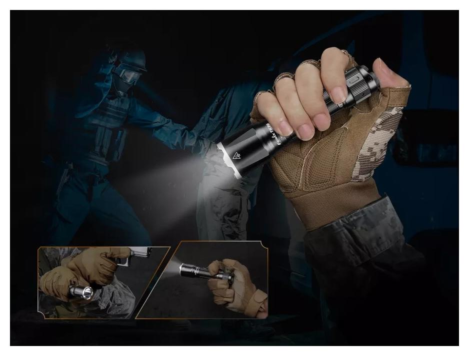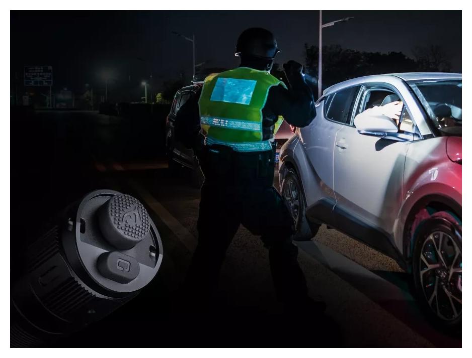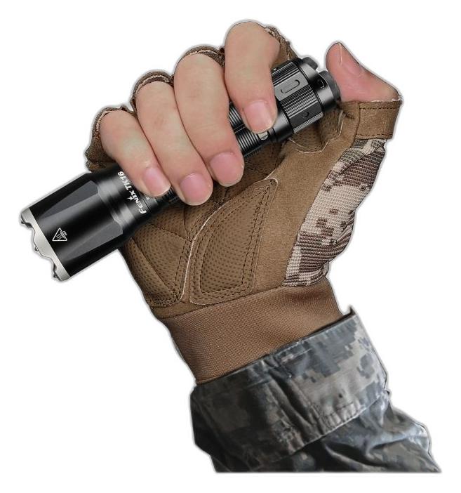 Włączniki są usytuowane blisko siebie i łatwo wyczuwalne nawet w rękawicach, dzięki czemu latarkę można wygodnie obsługiwać jedną ręką. Taki układ sterowania sprawia, że TK16 V2.0 jest prostym i przyjaznym narzędziem do codziennej pracy służb mundurowych.