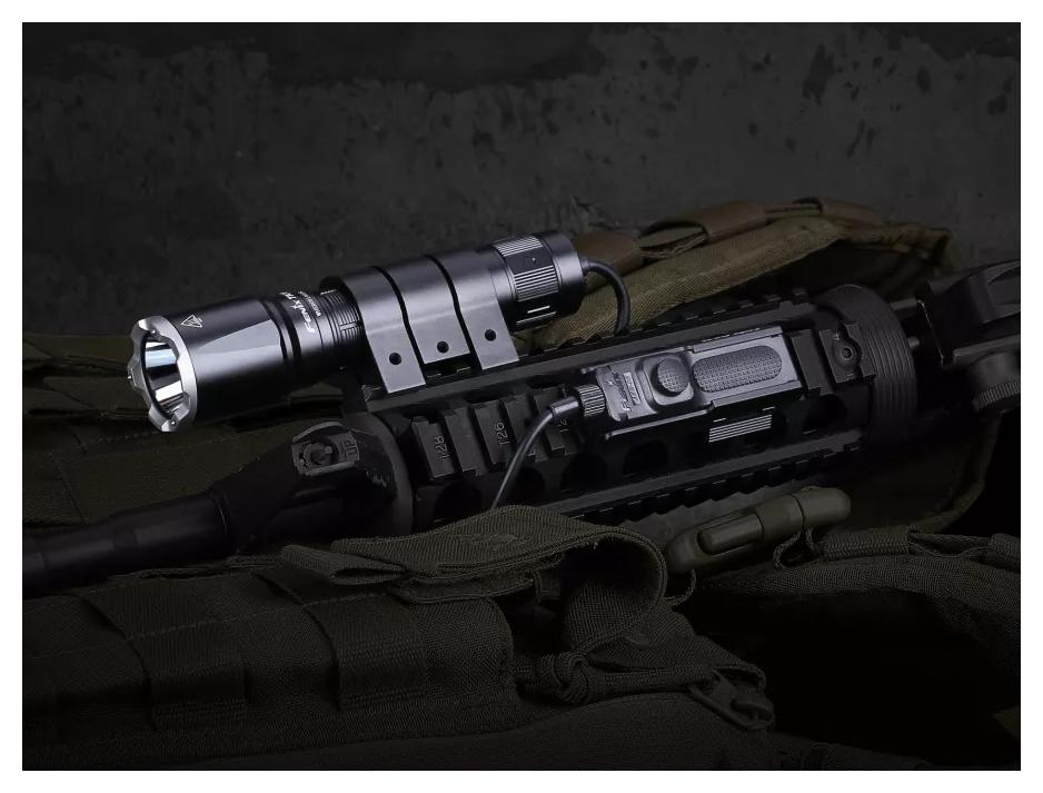 • dwa tylne włączniki: taktyczny (światło chwilowe, włączanie/wyłączanie) i funkcyjny (zmiana trybów, strobo)