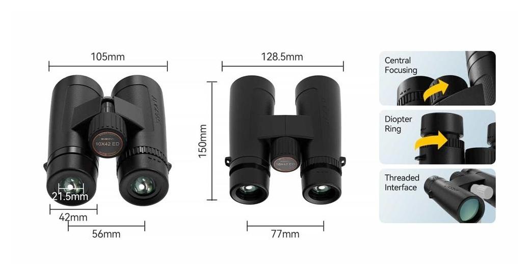 • rozstaw okularów: 56–77 mm