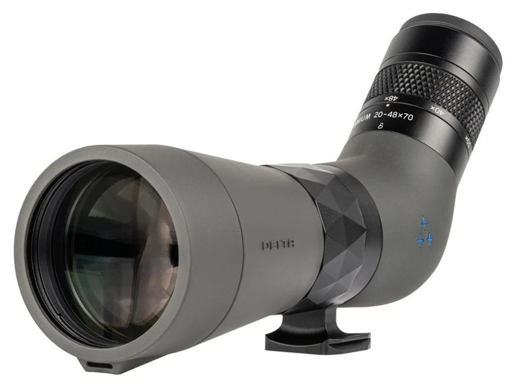 Luneta Titanium 70 ED wyposażona jest w szerokokątny okular typu zoom o zakresie powiększeń 20×–48×, co umożliwia zarówno szybkie obserwacje krajobrazu, jak i precyzyjne przybliżenia odległych detali. Odległość źrenicy wyjściowej wynosząca 16 mm zapewnia komfort użytkowania także osobom noszącym okulary korekcyjne, a regulowana muszla oczna pozwala na dokładne dopasowanie pozycji oka. Wysuwana osłona przeciwsłoneczna na obiektywie poprawia komfort obserwacji w jasnym świetle.