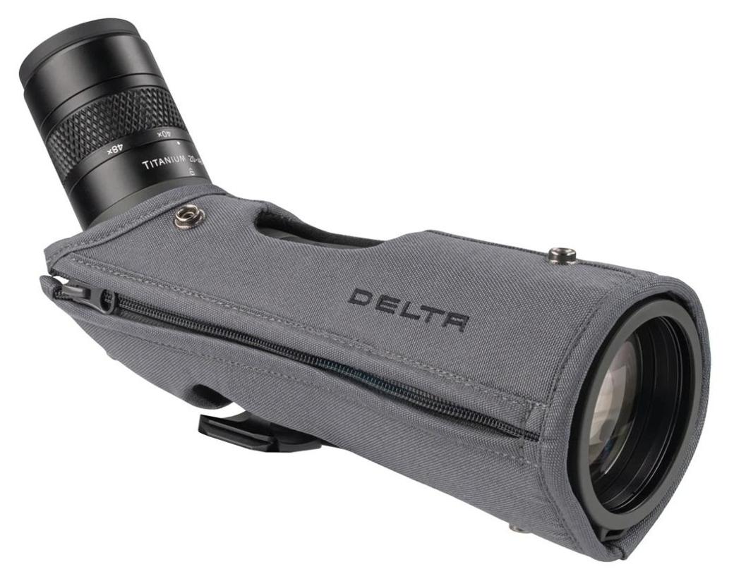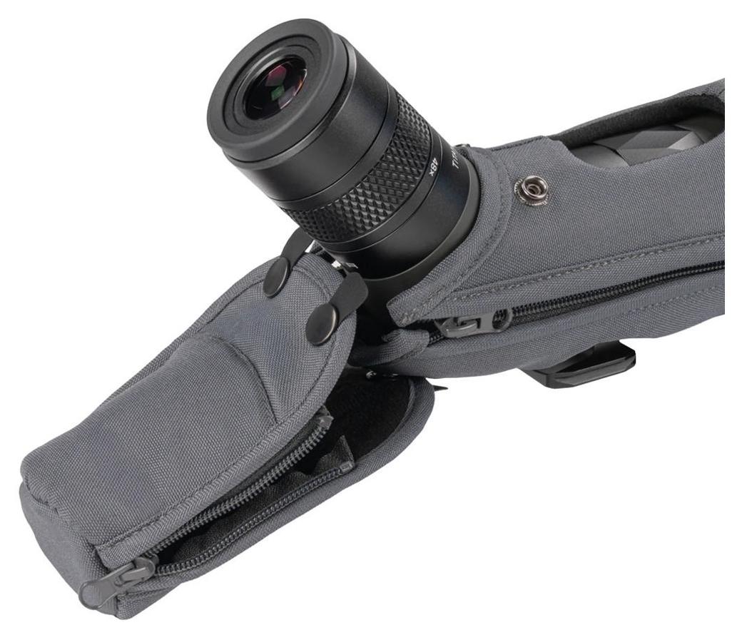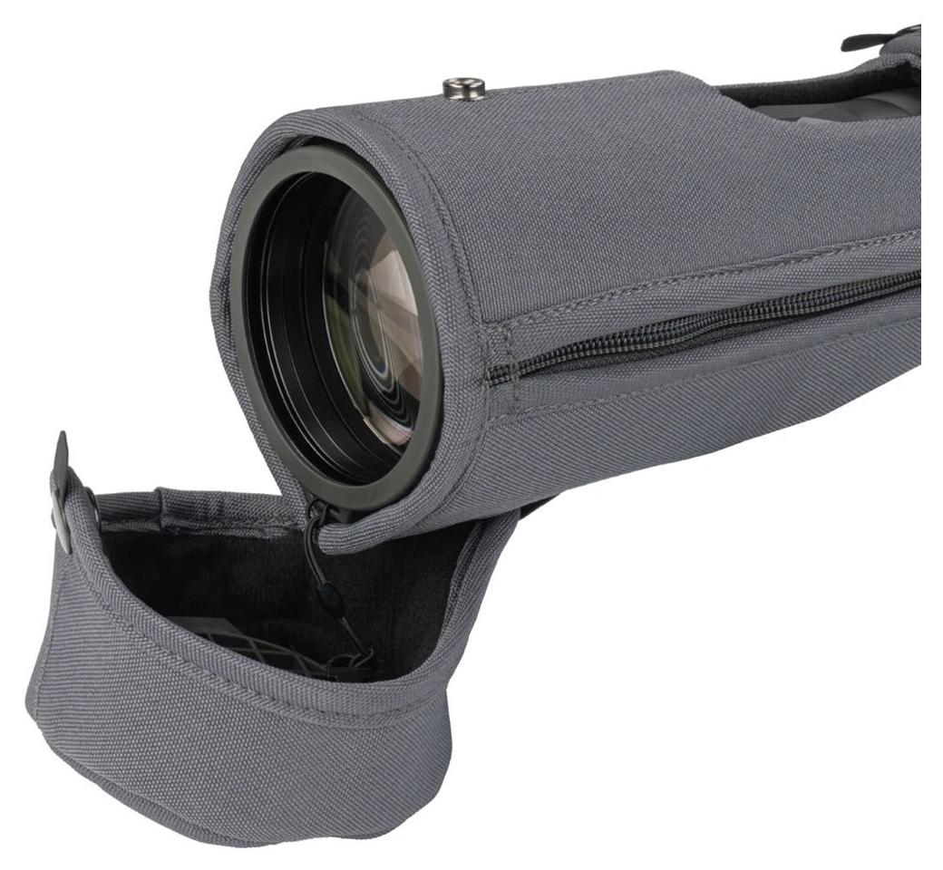 Titanium 70 ED dostarczana jest z lekkim, materiałowym pokrowcem ochronnym, który zabezpiecza lunetę podczas transportu i umożliwia wygodne użytkowanie w terenie bez zdejmowania osłony.
