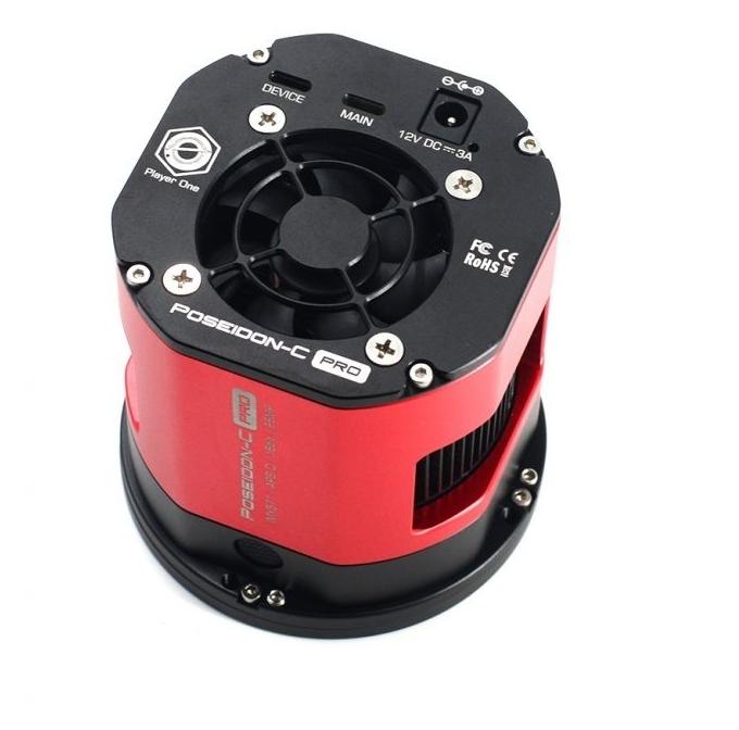 Player One Poseidon-C PRO Color (SKU: POA-POSEIDON-C-PRO) to chłodzona kamera one-shot color klasy premium, oparta na najnowszym sensorze Sony IMX571 COLOR w formacie APS-C (26 MP, 6252 × 4176 px). Piksel 3,76 µm, natywne 16-bitowe ADC i pełna studnia ≈ 50 ke- zapewniają imponujący zakres dynamiczny, a technologia STARVIS 2 gwarantuje szczytową czułość kwantową ~80 % oraz brak artefaktu amp-glow. Dwustopniowe chłodzenie TEC obniża temperaturę matrycy o ok. 40 °C poniżej otoczenia, dzięki czemu kamera rejestruje długie ekspozycje DSO z minimalnym szumem termicznym.