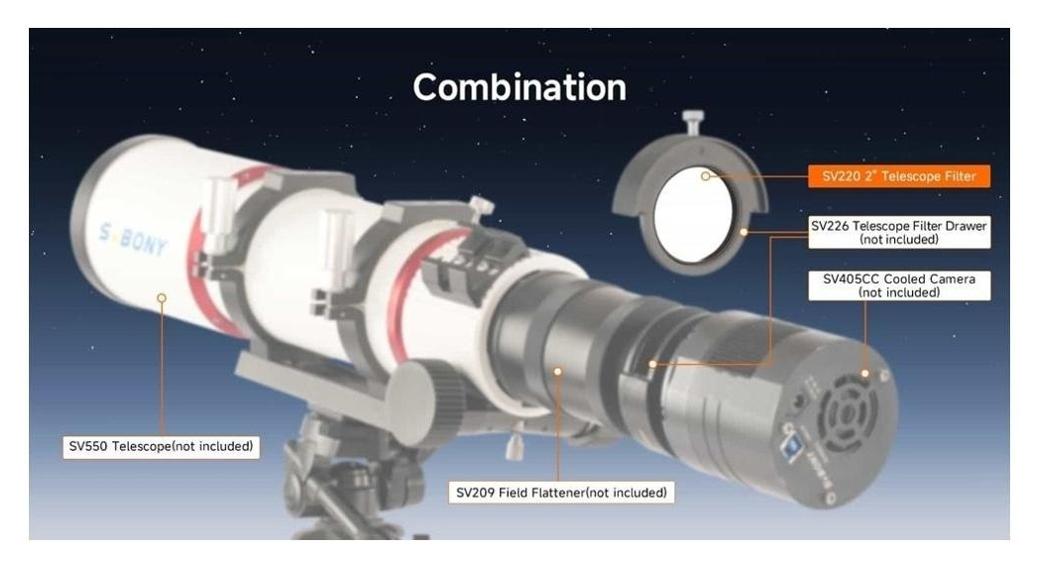 • dwupasmowy filtr wąskopasmowy 3 nm (H-alfa i OIII) do fotografii mgławic emisyjnych i planetarnych