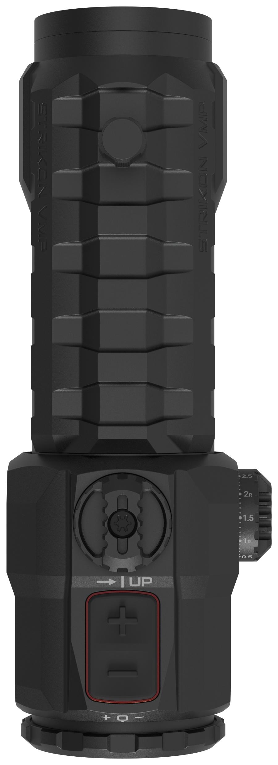 Siatka CRF-4 MIL w drugim planie optycznym (SFP), z czerwonym podświetleniem fiber-wire, oferuje szybkie, intuicyjne trzymania oraz precyzyjne punkty odniesienia przy strzelaniu na różnych odległościach. Do dyspozycji jest 11 poziomów jasności (w tym 2 do współpracy z noktowizją), a funkcja Shake Awake automatycznie wybudza celownik po wykryciu ruchu, oszczędzając baterię, gdy broń spoczywa. Obudowa z aluminium 6061, wodoszczelność w standardzie IP67, wypełnienie azotem oraz odporność na wstrząsy sprawiają, że Strikon VMP jest gotowy do pracy w wymagających warunkach poligonowych, sportowych i służbowych.