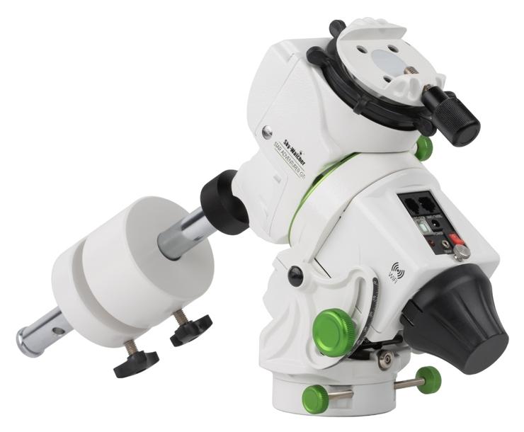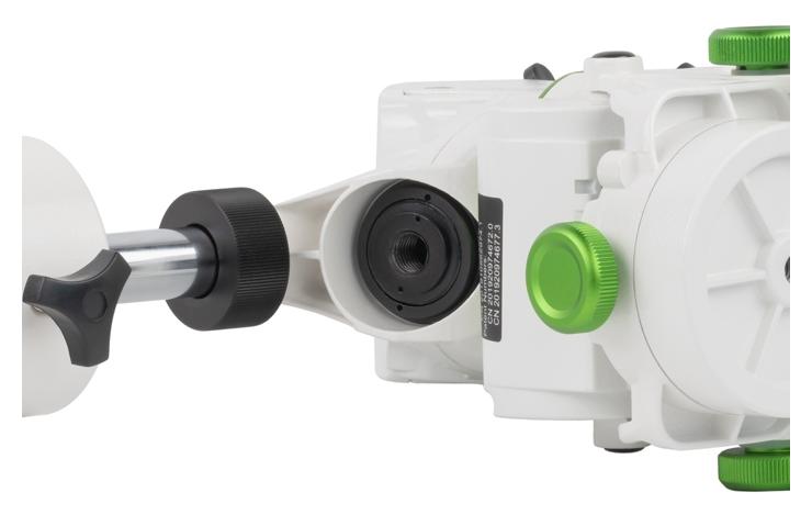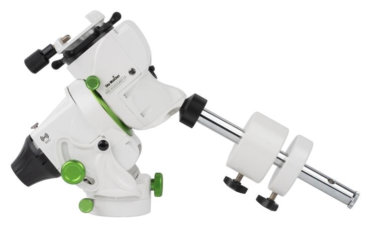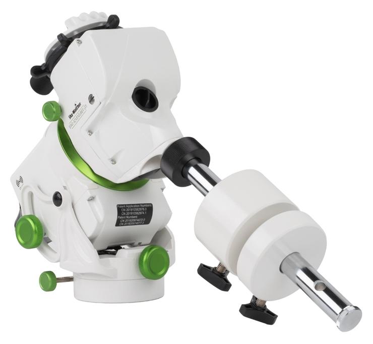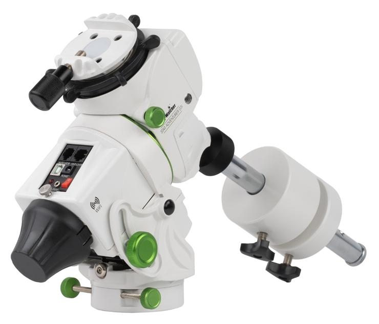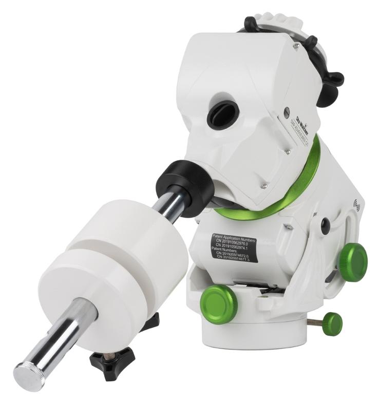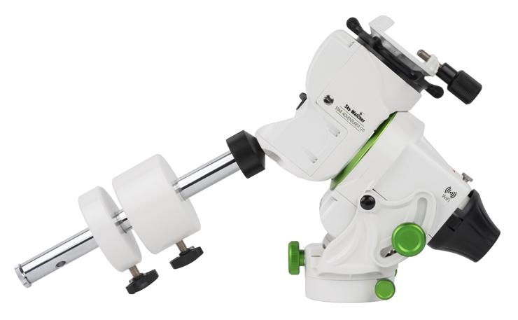 Montaż ten posiada również pręt przeciwwagi, który można przymocować w dwóch miejscach, standardowo wzdłuż osi montażu i pod kątem do użytkowania w niskich szerokościach geograficznych.