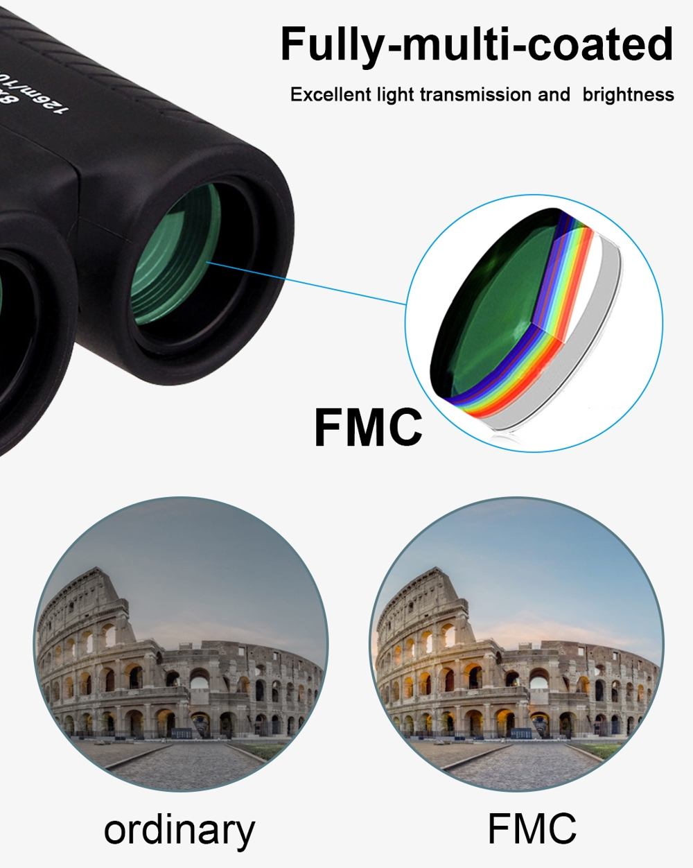 Model ten wyposażony został w optykę o ośmiokrotnym powiększeniu z obiektywami o średnicy 25 mm i pryzmatami typu Porro wykonanymi ze szkła borokrzemowego BK7. Dla zapewnienia jak najlepszego odwzorowania kolorów oraz wysokiej szczegółowości obrazu powierzchnie optyczne pokryte zostały pełną powłoką wielowarstwową (FMC).