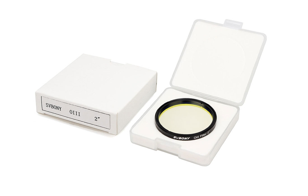 SVBONY O-III SV115 2" 18 nm to profesjonalny filtr astrofotograficzny o zwiększonej szerokości połówkowej okna transmisyjności (FWHM) wynoszącej 18 nm i charakterystyce widmowej zoptymalizowanej pod kątem skutecznego wycinania zanieczyszczenia świetlnego. Przepuszcza on światło o długości fali 495,9 i 500,7 nm emitowane przez zjonizowane atomy tlenu, którego rejestracja ma szczególnie duże znaczenie przy fotografowaniu mgławic emisyjnych.