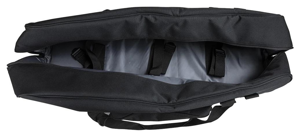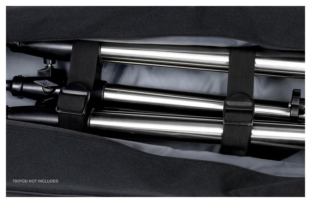 Wewnątrz torby znajduje się miękka poliestrowa wyściółka z regulowanymi paskami, które będą pewnie trzymać statyw.
