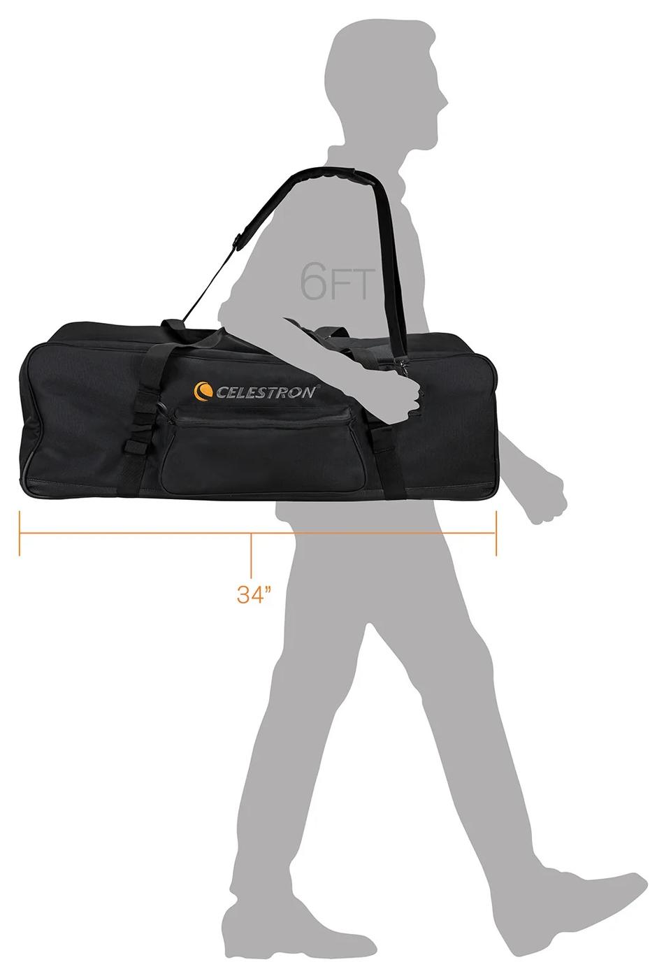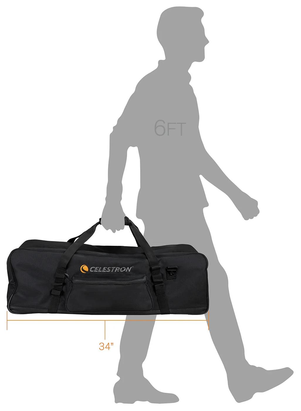 Ta torba może pomieścić statywy o długości poniżej 34 cali, w tym statywy z tych zestawów teleskopów Celestron.