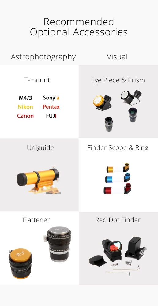 Mamy więc piękny sprzęt "wyjazdowy", szczególnie polecany do astrofotografii w szerokich kadrach, oraz jako luneta obserwacyjna i do digiscopingu.