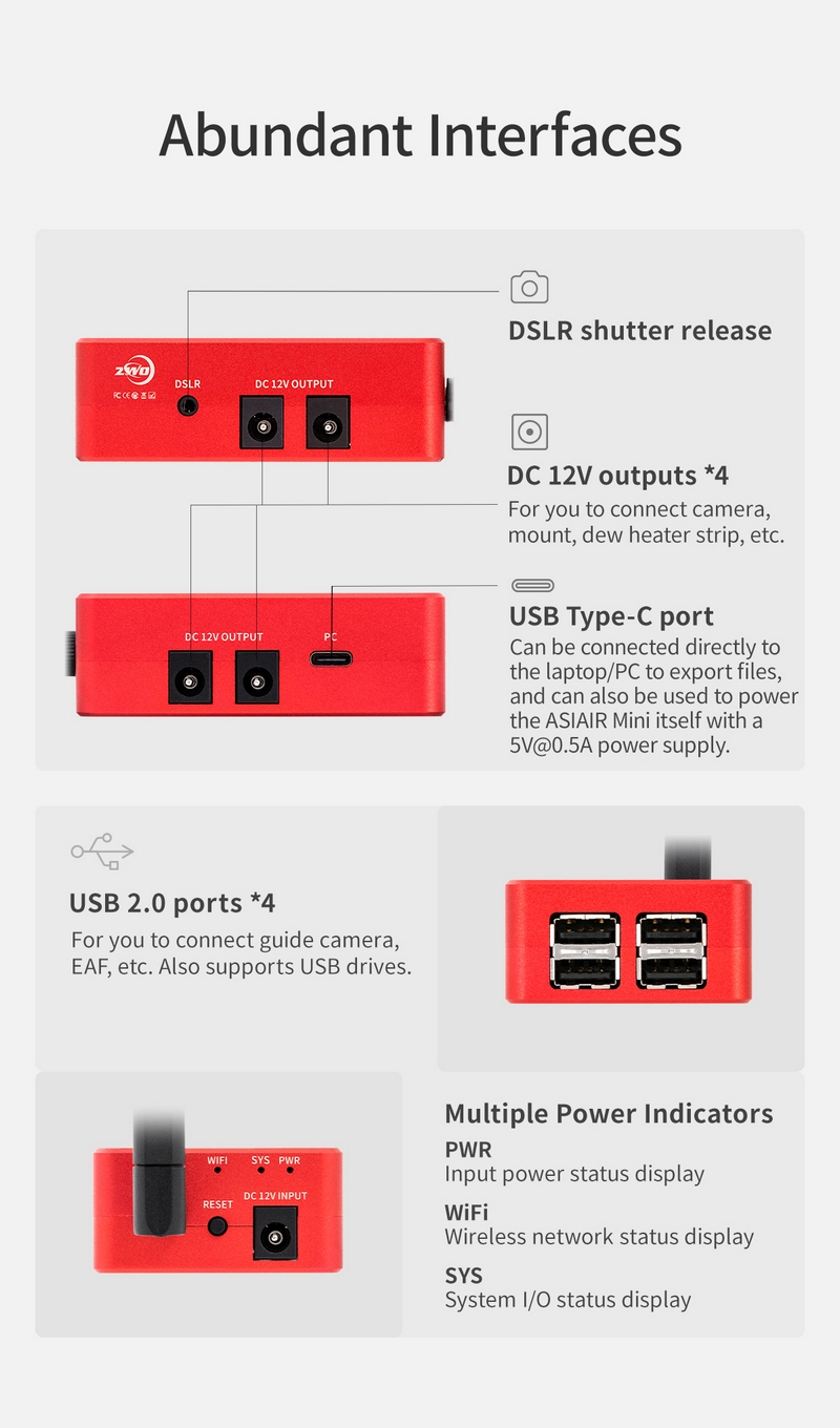Najważniejsze cechy kontrolera ZWO ASIAIR MINI