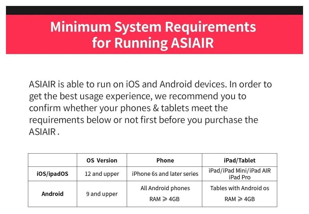 • wsparcie dla aplikacji mobilnej: ASIAIR App