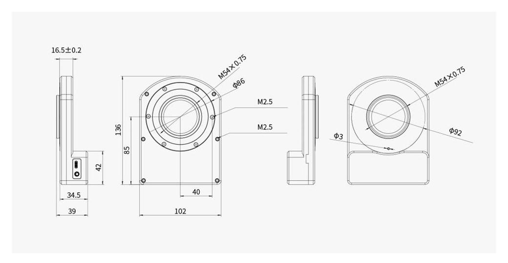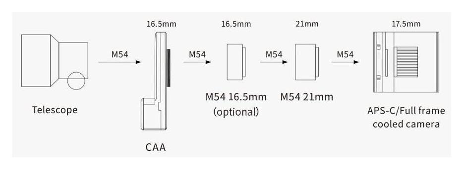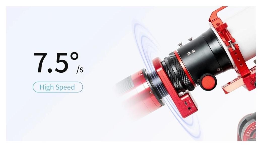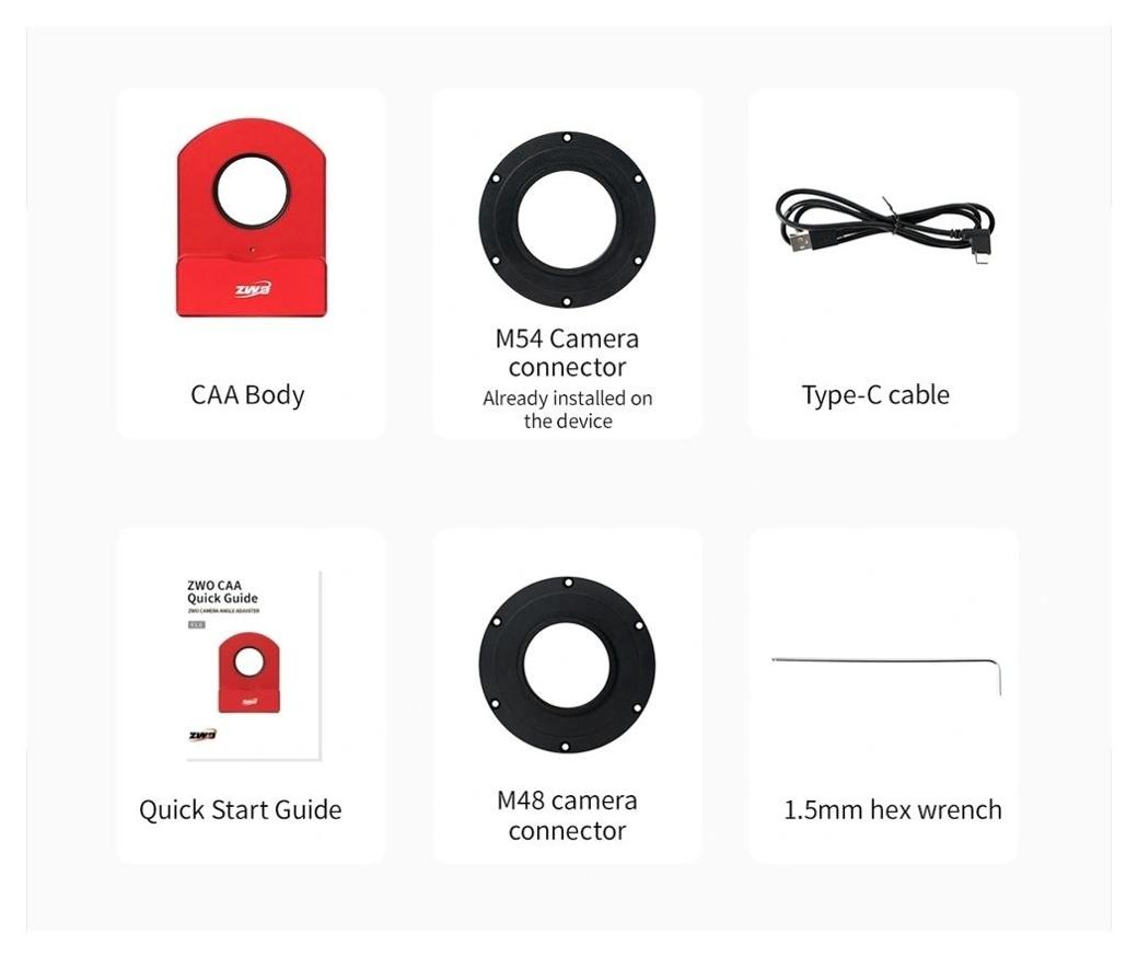 ZWO Camera Angle Adjuster wyposażony został w mechanizm o wysokim obciążeniu maksymalnym, który z powodzeniem radzi sobie nawet z dużymi, profesjonalnymi kamerami astrofotograficznymi. Napędzany jest on przez wysokorozdzielcze silniki krokowe, które oprócz doskonałej precyzji pozycjonowania zapewniają wysoką prędkość obrotową. Rotator kompatybilny jest z komputerami ASIAIR i pakietem sterowników ASCOM, a do sterowania nim można użyć również pilota ręcznego ZWO EAF.