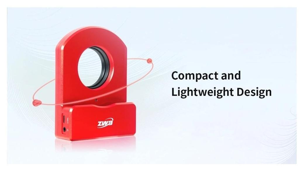 Rotator zamknięty został w lekkiej i wytrzymałej obudowie wykończonej na tradycyjny dla marki ZWO czerwony kolor.