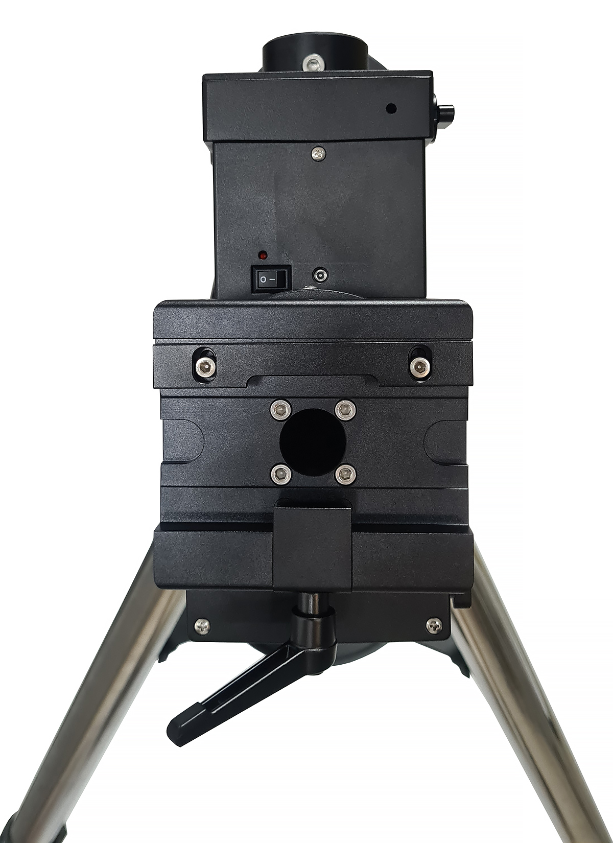 Metalowa głowica montażu skrywa w sobie precyzyjny system napędowy złożony z silników krokowych o wysokiej rozdzielczości, z których moment obrotowy przenoszony jest na osie deklinacji i rektascensji za pomocą przekładni pasowej. Najwyższą precyzję prowadzenia zestawu zapewnia zaawansowany system permanentnej korekty błędu okresowego, dzięki któremu jego wartość jest mniejsza niż dziesięć sekund łuku.