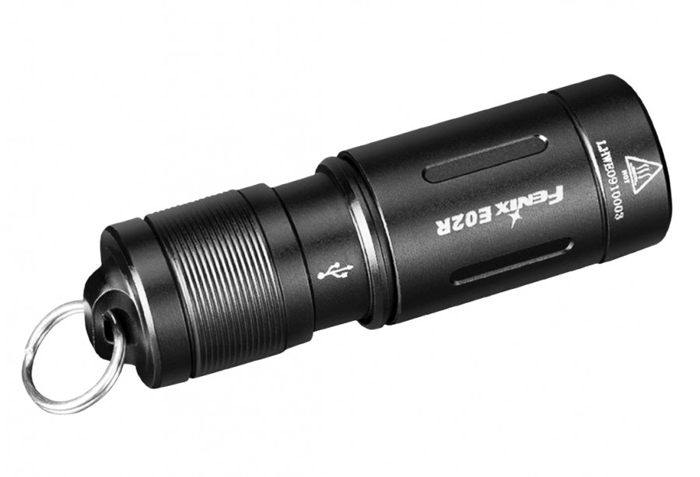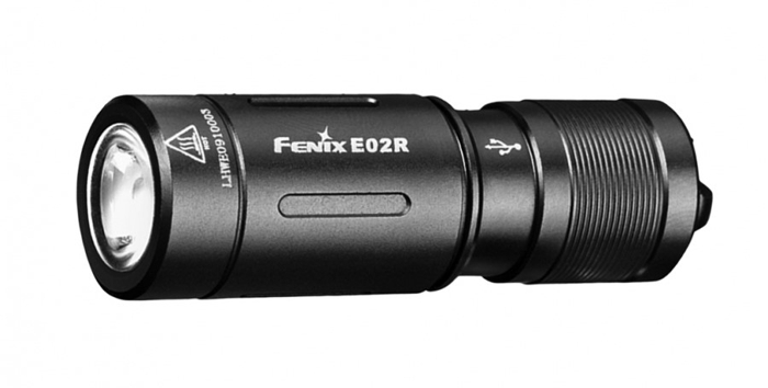 Fenix E02R to kieszonkowa latarka EDC w formie breloka, która emituje strumień 200 lumenów o zasięgu do 49 m, wyposażona w zintegrowany akumulator oraz port ładowania micro-USB.