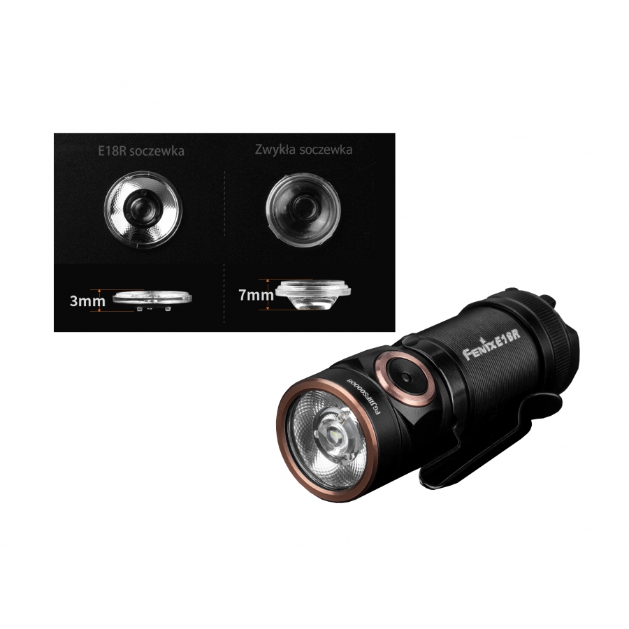 Fenix E18R to kompaktowa latarka o wydajnym strumieniu światła, łącząca wysoką funkcjonalność, poręczność oraz nowoczesny design, który przypadnie do gustu każdemu miłośnikowi „światełek”.