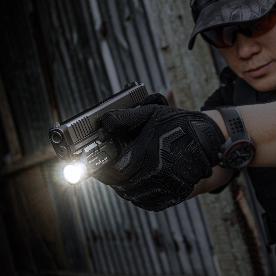 Fenix GL19R to profesjonalna latarka taktyczna zaprojektowana do współpracy z pistoletami wyposażonymi w szynę Picatinny lub mocowanie Glock.