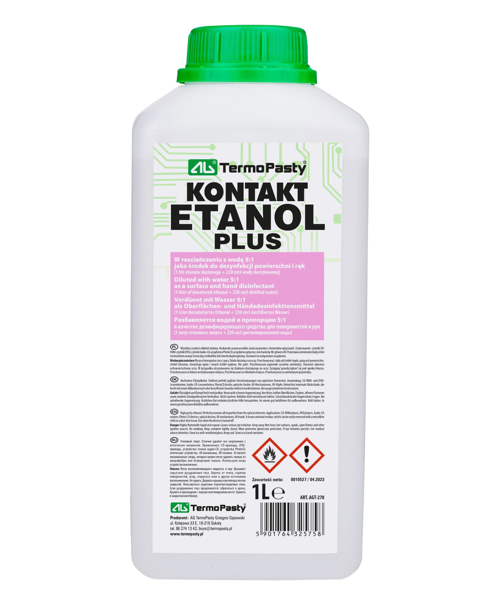 Kontakt ETANOL plus to wysokiej czystości alkohol etylowy. Doskonale usuwa wszelkie zanieczyszczenia z elementów optycznych.