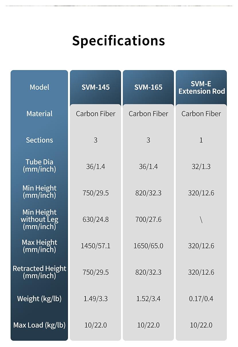 Sirui Monopod SVM-145 Rapid System (SKU: 127678 / SVM-145) to modułowy monopod z włókna węglowego, wyposażony w opatentowany system Rapid System umożliwiający szybką, jednostopniową regulację wysokości przez obrót blokady. Odłączana stopka pozwala konfigurować zestaw jako monopod, monopod z nóżkami lub statyw stołowy.