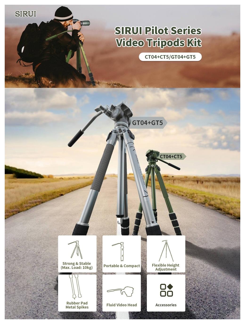Sirui Pilot Series Alu Tripod GT04 + GT5 Videohead Grey (SKU: 124868 / GT04+GT5) Statywy opinie