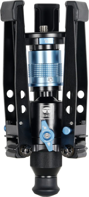 Trójnożna podstawa łączy się z monopodem za pośrednictwem przegubu kulowego, dzięki któremu monopod może być odchylony od pionu o 36° przy zachowaniu pełnej stabilności. Po zdemontowaniu trójnogu można zastąpić go gumową stopką.