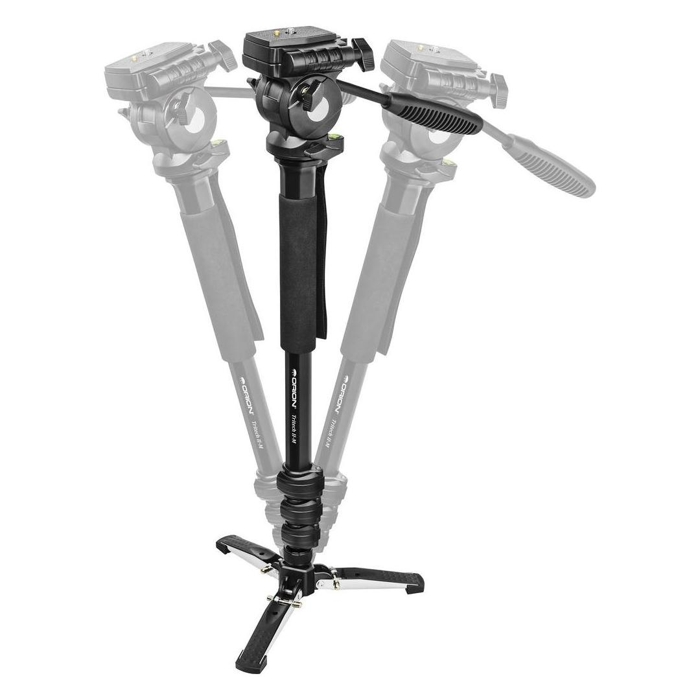 Modułowa konstrukcja monopodu umożliwia dodatkowo szybkie przekształcenie go w statyw stołowy poprzez bezpośrednie zamocowanie głowicy o rozkładanej podstawy.