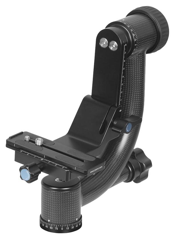 Zastosowanie włókna węglowego sprawia, że cały zestaw aparat–obiektyw staje się odczuwalnie „lżejszy” w prowadzeniu, a ruchy głowicy są płynne i precyzyjne. Głowica umożliwia obrót w panoramie w pełnym zakresie 360° oraz pochylenie w zakresie od +150° do −60°. Co istotne, system gimbalowy pozwala utrzymać zestaw w zadanej pozycji bez konieczności blokowania głowicy, co znacząco zwiększa komfort pracy z dużymi ogniskowymi.