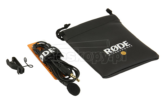 Osłona z gąbki minimalizuje odgłosy powiewów wiatru i głoski wybuchowe (twarde "b", "t" i "p"). Mikrofon wyposażono również w wytrzymały klips do przypinania, ze specjalnym uchwytem dla przewodu.