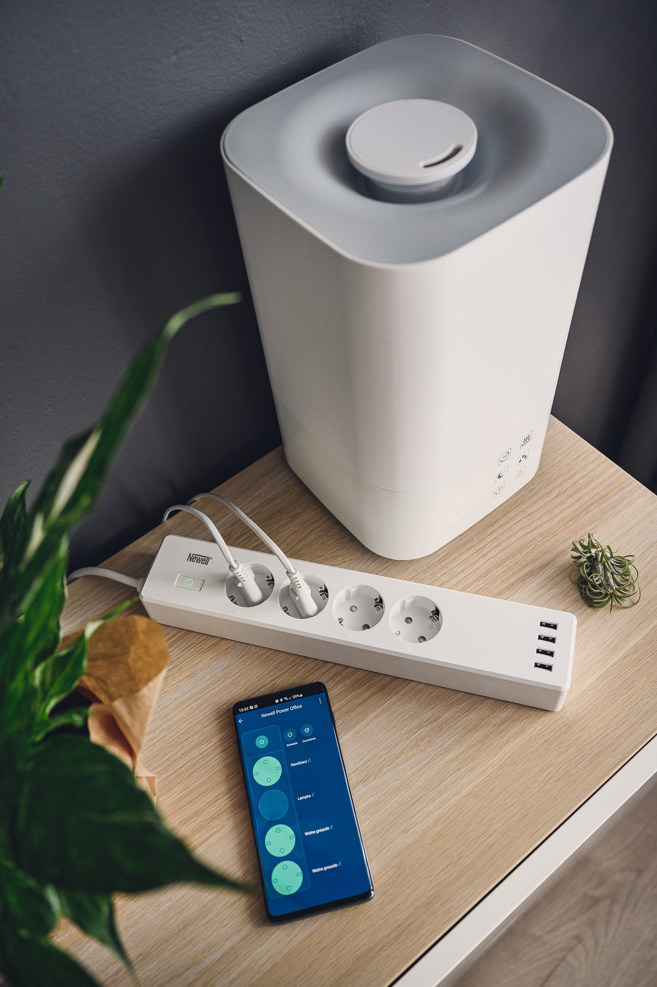 Dzięki łączności WiFi zasilanie listwy Newell Power Office WiFi odłączysz jednym kliknięciem z poziomu swojego smartfona. W ten sam sposób uruchomisz oczyszczacz lub nawilżacz powietrza, jeszcze zanim dotrzesz z pracy do domu. Już po kilku dniach z inteligentną listwą WiFi przekonasz się, jak wiele sytuacji może ułatwić zdalne zarządzanie zasilaniem w poszczególnych gniazdkach!