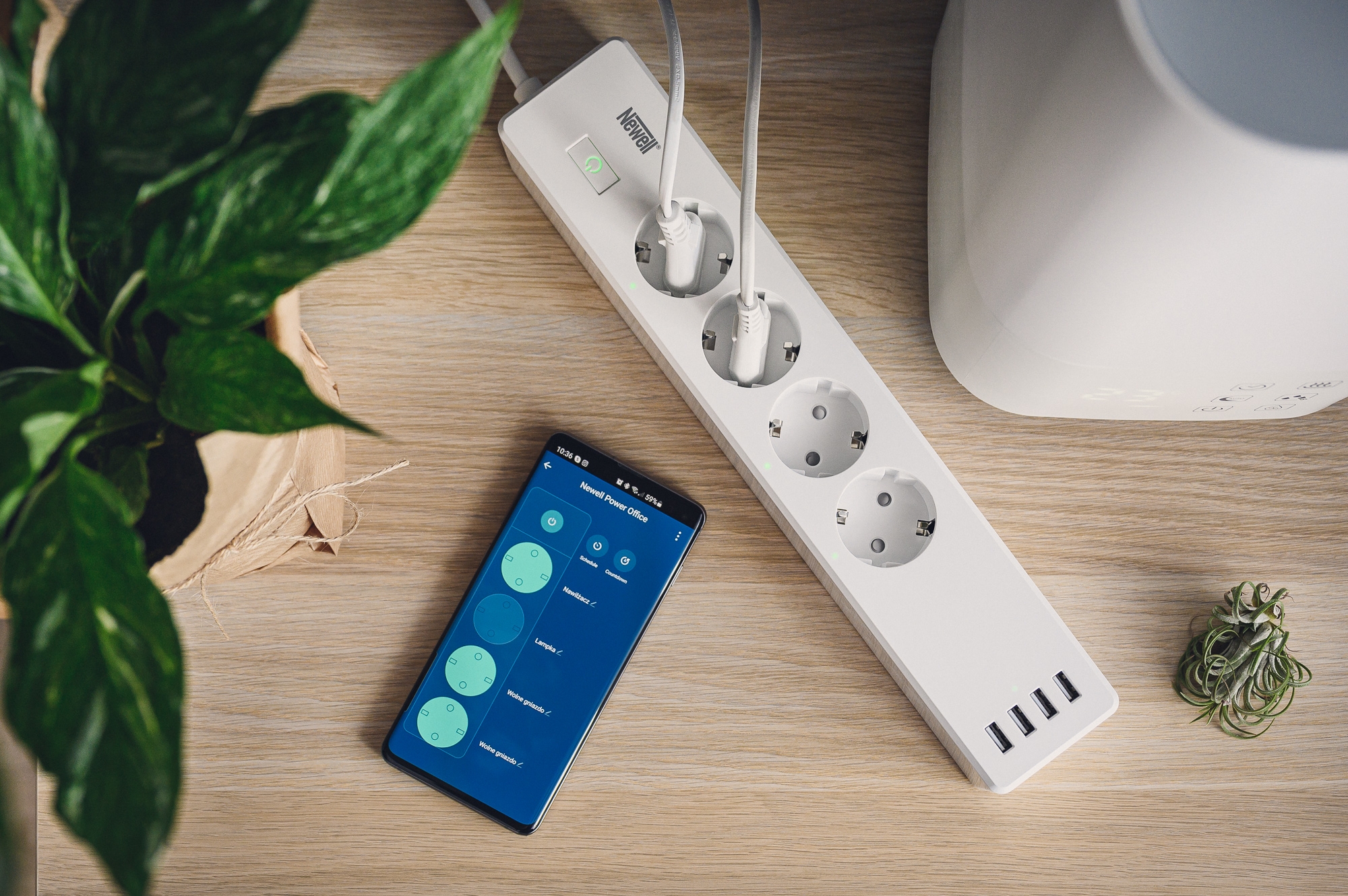 Listwa zasilająca Newell Power Office WiFi sprawi, że niemal każde urządzenie elektroniczne, jakie do niej podłączysz stanie się bardziej „smart”. Estetyczny biały panel pomieści aż 8 różnych wtyczek. Skorzystaj z 4 niezależnie sterowanych gniazdek oraz 4 portów USB i zobacz, jak wiele obszarów codziennego życia zmienia się razem z inteligentną listwą zasilającą. Dzięki darmowej aplikacji na smartfony zyskasz możliwość zdalnego sterowania oświetleniem, a także wygodniejszego ładowania urządzeń. Z Newell Power Office WiFi w ciągu kilku sekund rozwiążesz problem włączonych urządzeń, o których często przypomina nam się po wyjściu z domu. Twórz harmonogramy aktywności, korzystaj z wyłącznika czasowego i oszczędzaj na rachunkach za prąd. Przekonaj się, że inteligentny dom to nie tylko drogie urządzenia, o których trzeba myśleć już na etapie powstawania jego projektu architektonicznego. Poznaj przedłużacz, który zapewni Ci lepszy komfort życia.