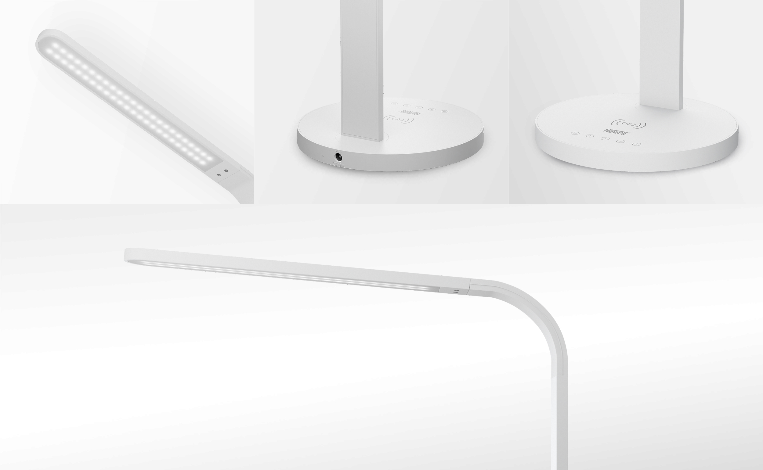 Lampka biurkowa LED Newell Sundesk NH001 zapewnia idealne warunki oświetleniowe do pracy, nauki i odpoczynku. Prosty panel sterowania umożliwia regulowanie temperatury barwowej światła oraz stopnia przyciemnienia. Urządzenie jest niezwykle energooszczędne, posiada wyłącznik czasowy. Dodatkowo w podstawkę lampy została wbudowana ładowarka bezprzewodowa do smartfonów.