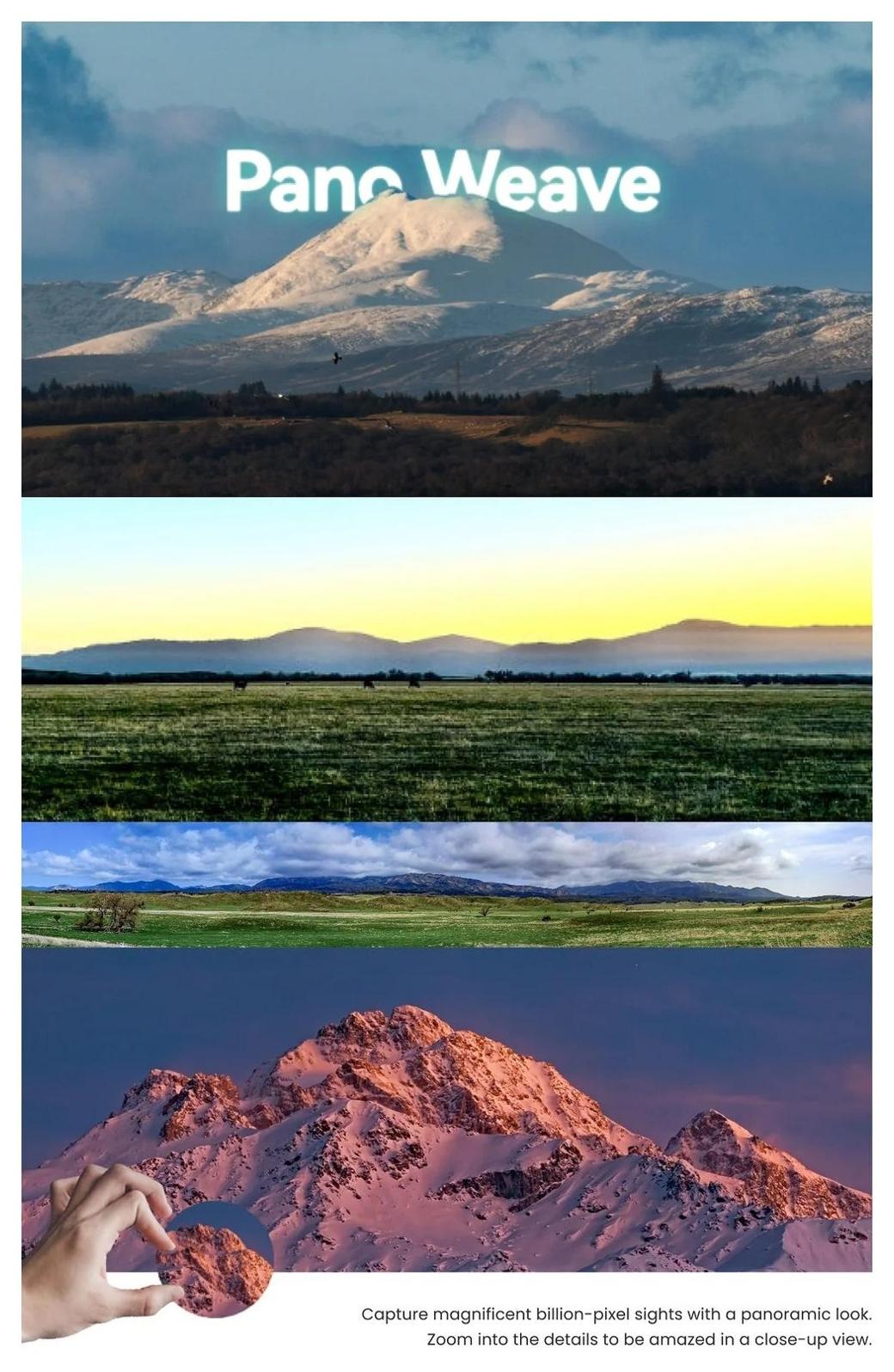 • panoramy: tryb giga-pixel oraz chmurowe łączenie „Pano Weave” z automatycznym planowaniem liczby ujęć