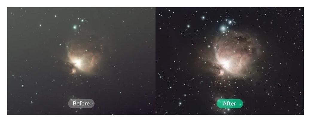 • w porównaniu do DWARF 2: większa apertura tele (35 mm vs 24 mm) i dłuższa ogniskowa (150 mm vs 100 mm), nowy sensor IMX678 zamiast IMX415, dłuższe ekspozycje w trybie EQ, wyższa moc NPU (5 TOPS vs 2 TOPS), większa bateria (10000 mAh vs 5600 mAh), pamięć wbudowana eMMC 128 GB, więcej trybów dostępnych także dla kamery szerokokątnej oraz NFC, Astro Mosaic i astrofotografia szerokokątna
