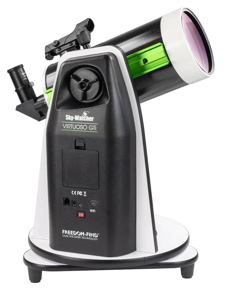 Montaż Virtuoso GTi automatycznie naprowadza teleskop na wybrany obiekt i utrzymuje go w polu widzenia. Wbudowana sieć bezprzewodowa WLAN umożliwia sterowanie teleskopem z poziomu smartfona lub tabletu, bez konieczności korzystania z internetu. Darmowa aplikacja SynScan na systemy iOS oraz Android zapewnia pełne sterowanie ruchem i funkcjami montażu. Zasilanie może być realizowane za pomocą 8 baterii AA 1,5 V lub zasilacza 12 V DC.