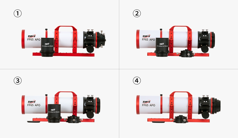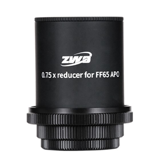 Reduktor ZWO F65RE 0,75x został opracowany jako dedykowane akcesorium do najnowszego astrografu ZWO FF65 APO 65 mm. Gwarantuje on znakomitą korekcję pola, dzięki czemu idealnie współpracuje on z profesjonalnymi aparatami i kamerami wyposażonymi w matrycę pełnoklatkową.