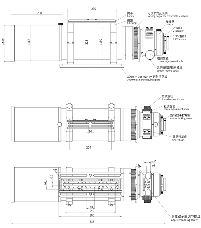 • mocowanie do montażu: stopka Losmandy