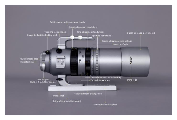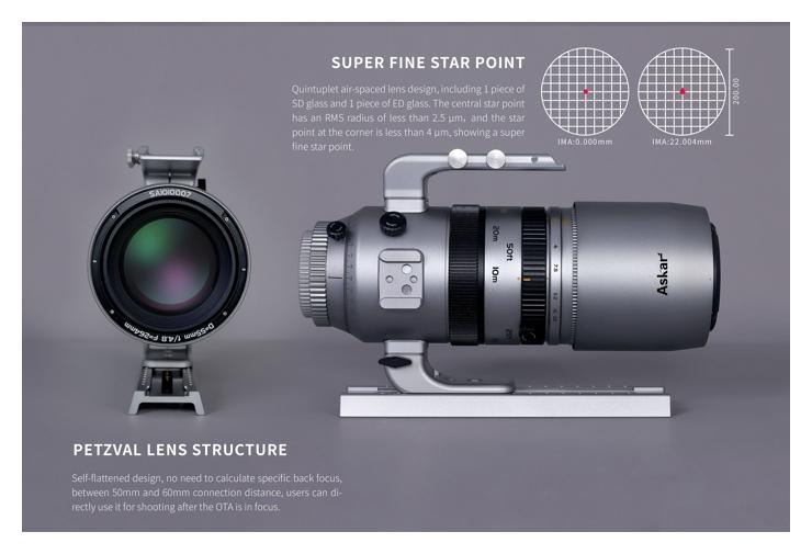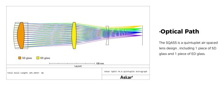 Askar SQA55 f/4,8 55/264 to profesjonalny astrograf o konstrukcji umożliwiającej zastosowanie go również w codziennej fotografii lustrzankami cyfrowymi oraz aparatami bezlusterkowymi.